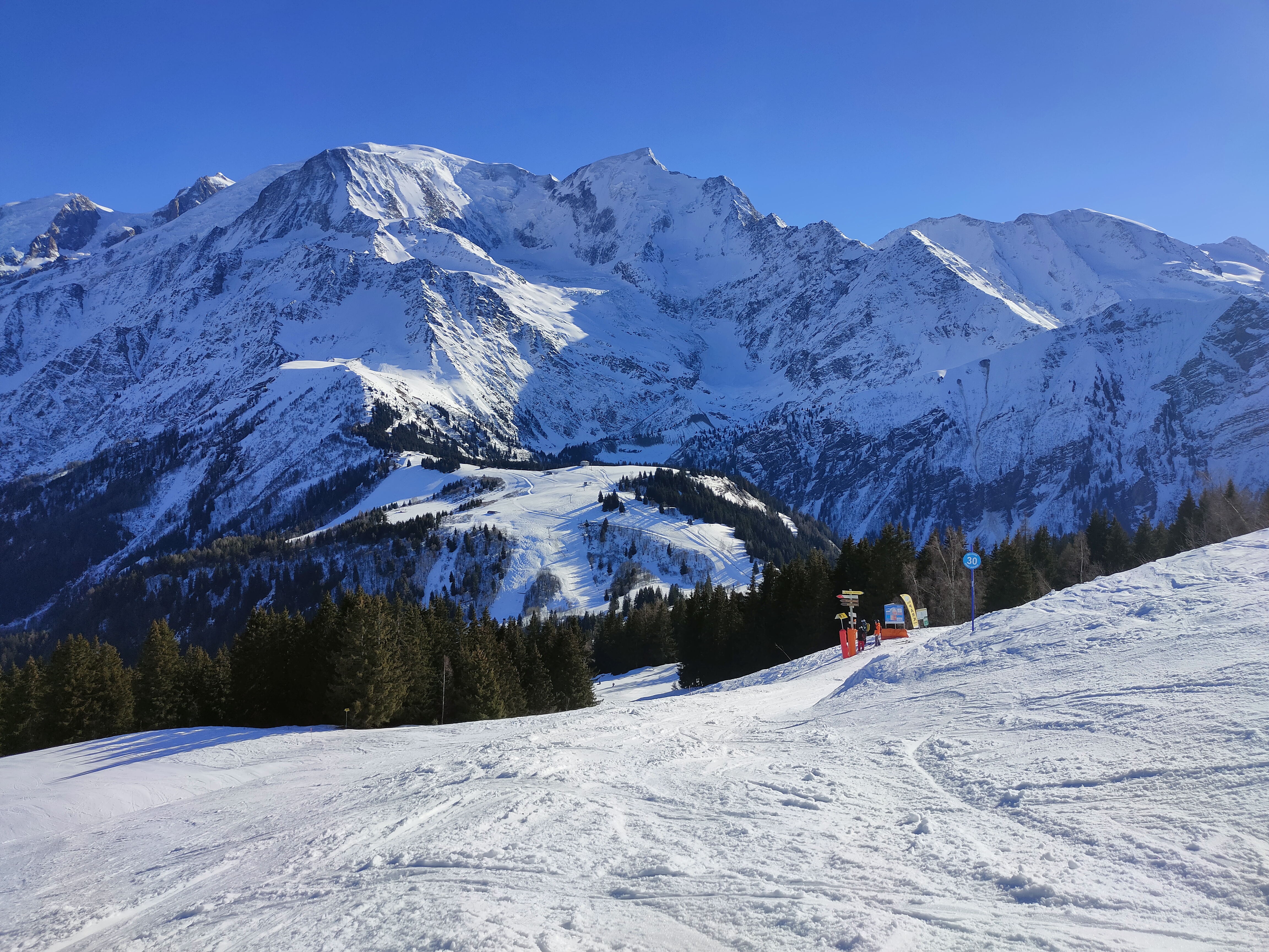Une vue imprenable sur la chaîne du mont blanc, station familiale avec de belles pistes.