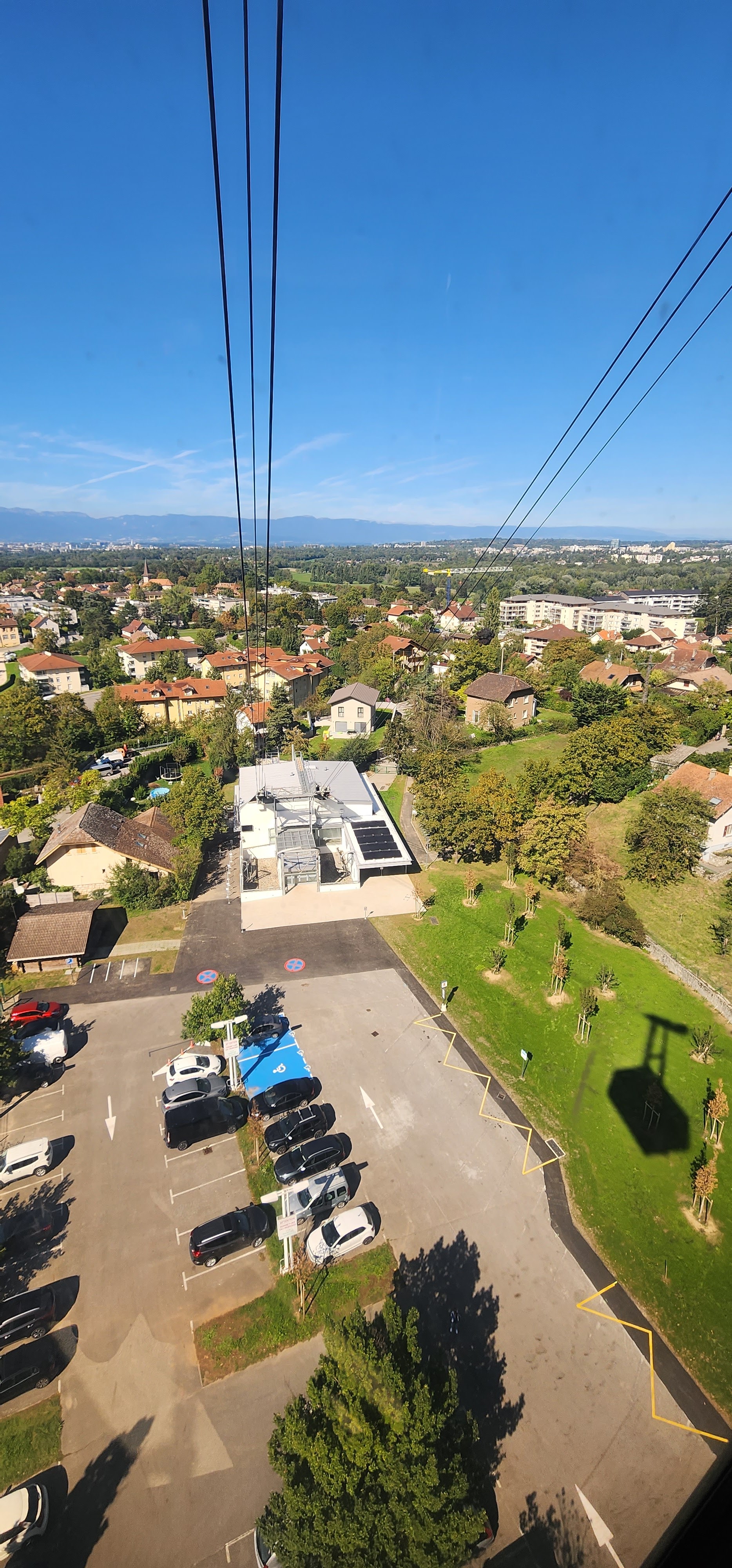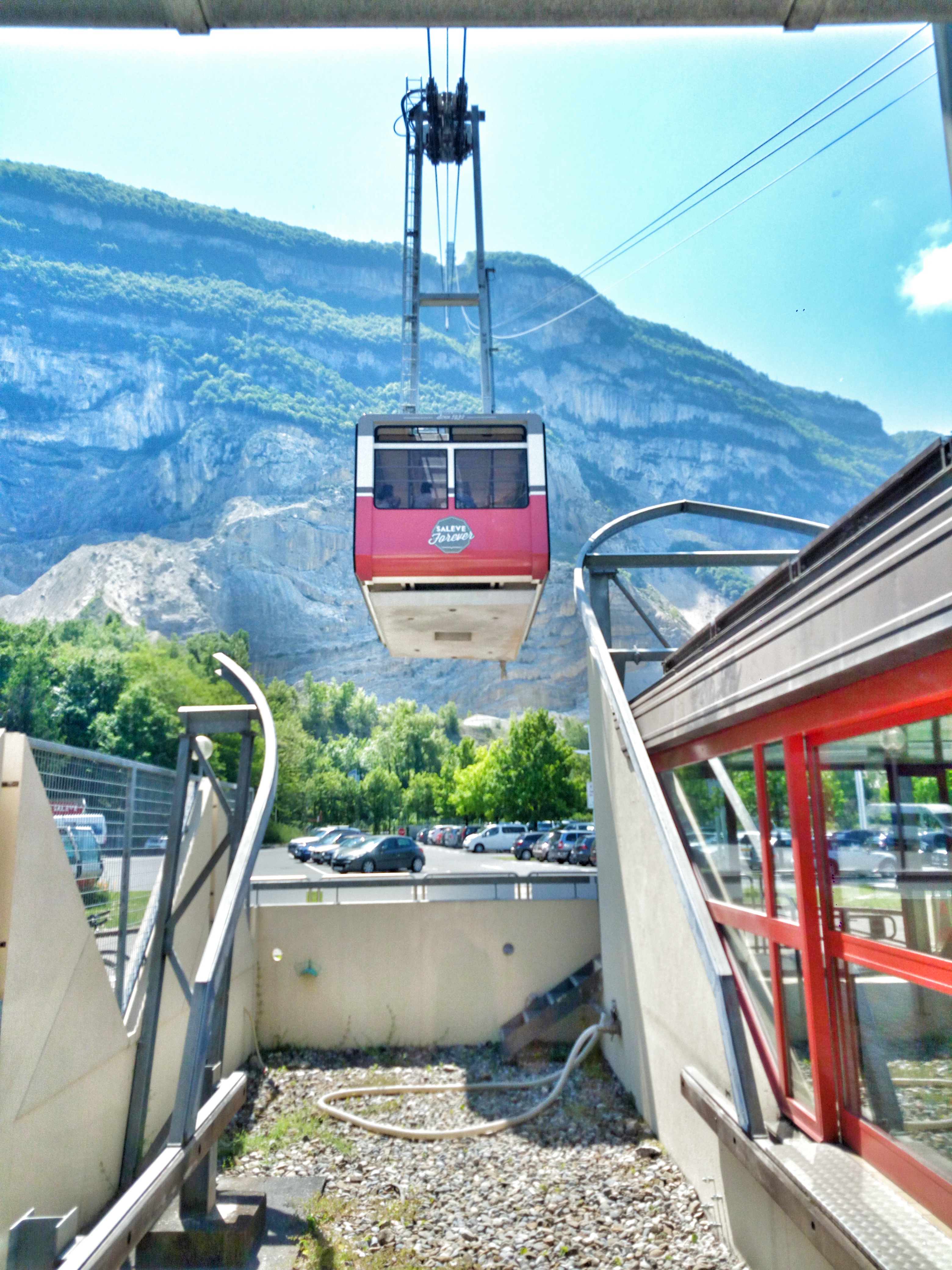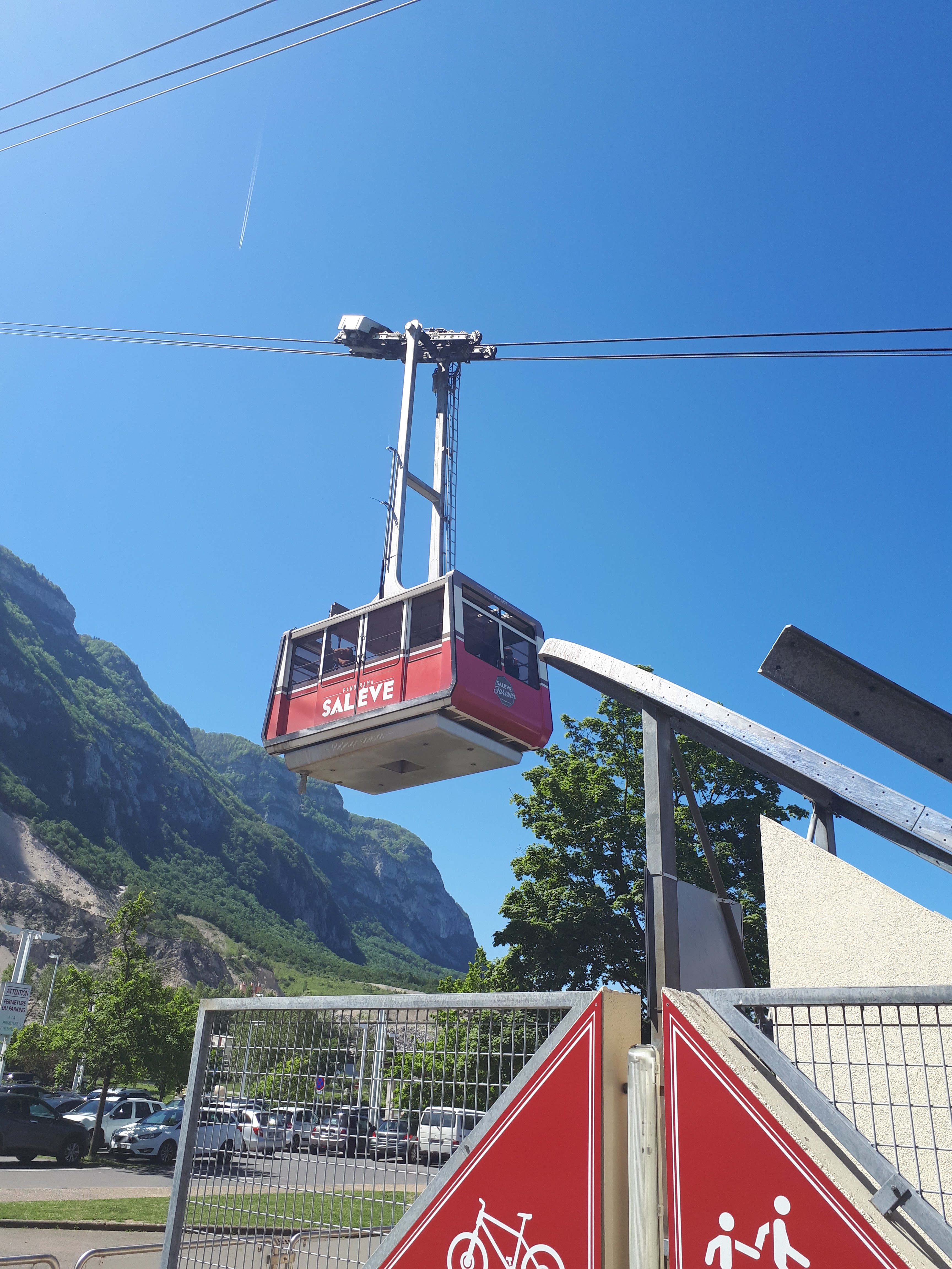 Parking gratuit au pied du téléphérique. Employés sympa. Pas d'attente . Le trajet ne fait pas peur , même pour ceux qui ont le vertige. Très belle vue sur le Salève et Genève . Je recommande