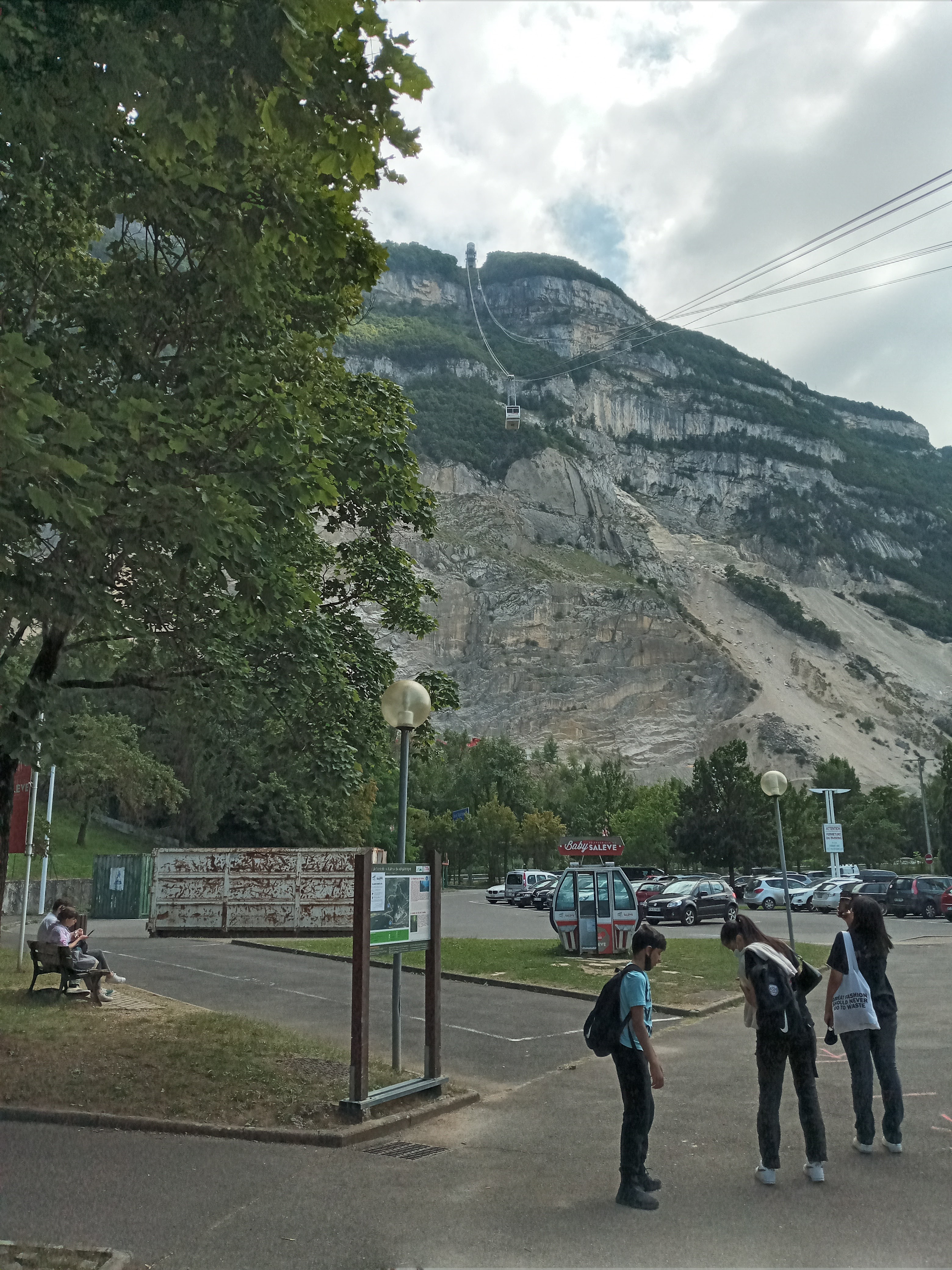 La gare du téléphérique du Salève en bas est équipée d'un parking, les tarifs sont raisonnables, moins de 20 euros pour un aller et retour pour un enfant de moins de 16 ans et ses deux grands parents. Horaires actuels 9 h à 19h. Le personnel est efficace et agréable.