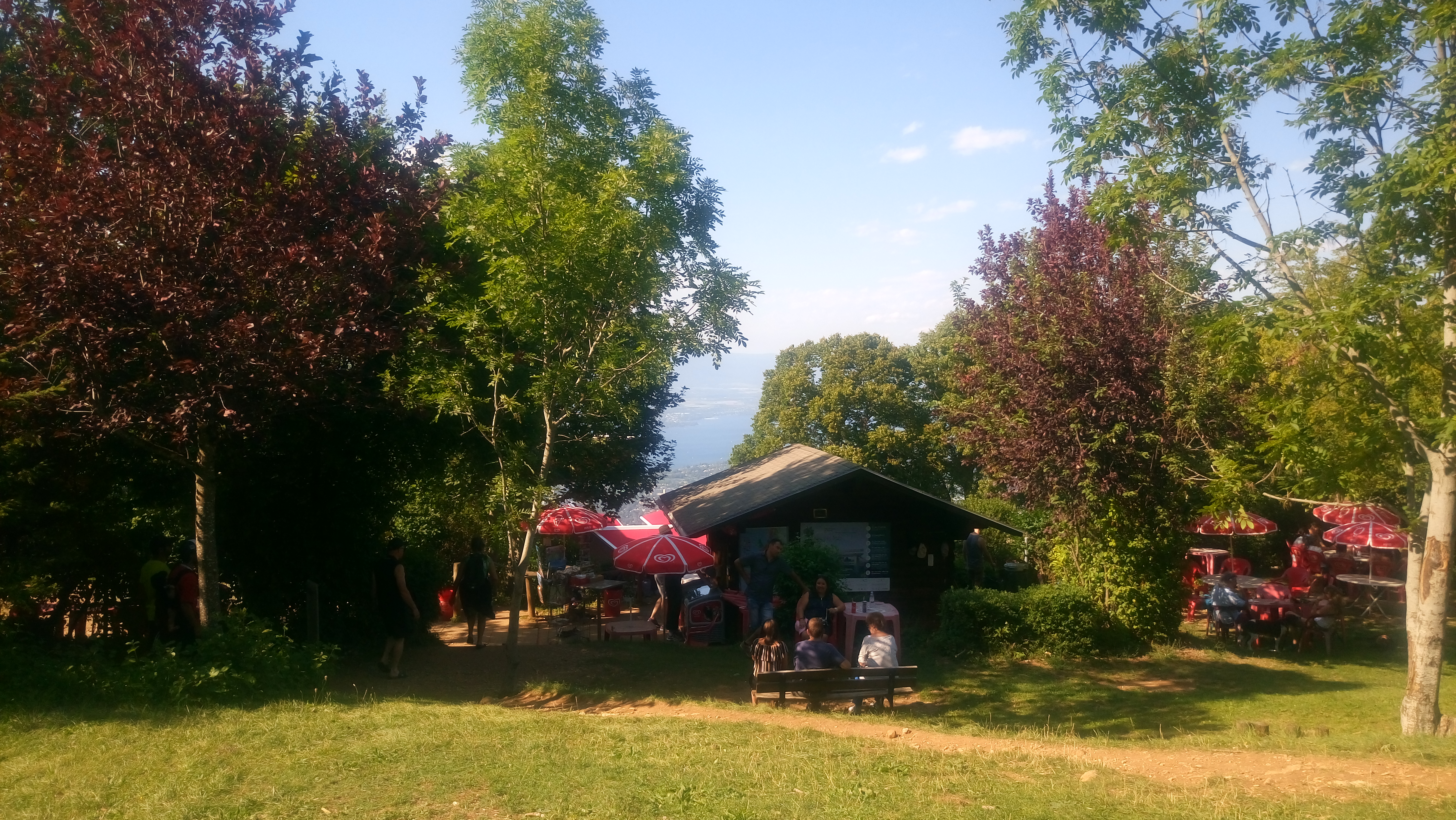 Superbe vue sur Genève et le lac Léman. Petit bar en haut et de bonne randonnée à faire.