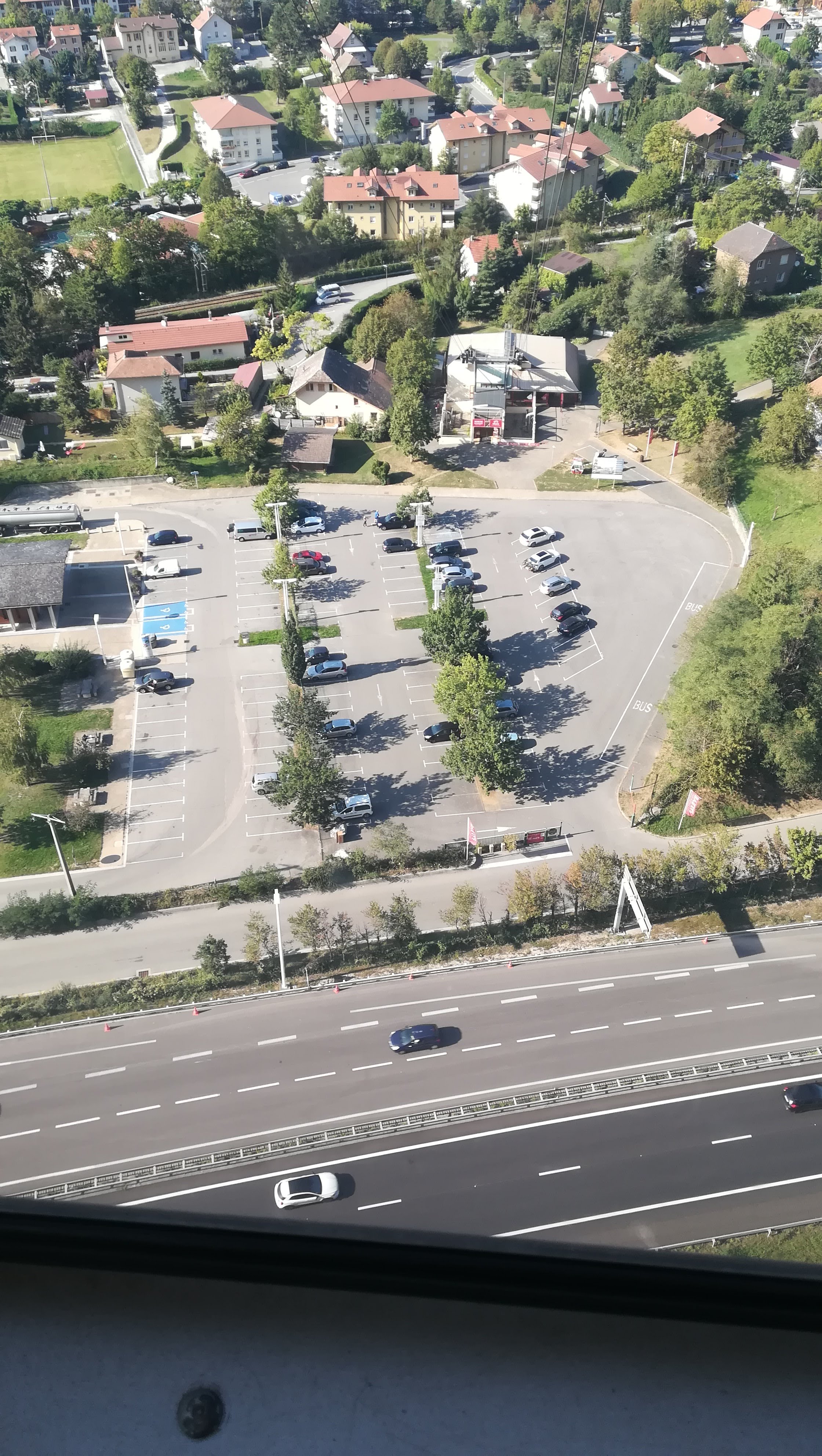 Aire de repos qui a été refaite récemment. On peut également accéder au téléphérique du Salève depuis l'aire. Belles vues sur le lac Léman et Genève et agréables promenades depuis l'arrivée du téléphérique.
