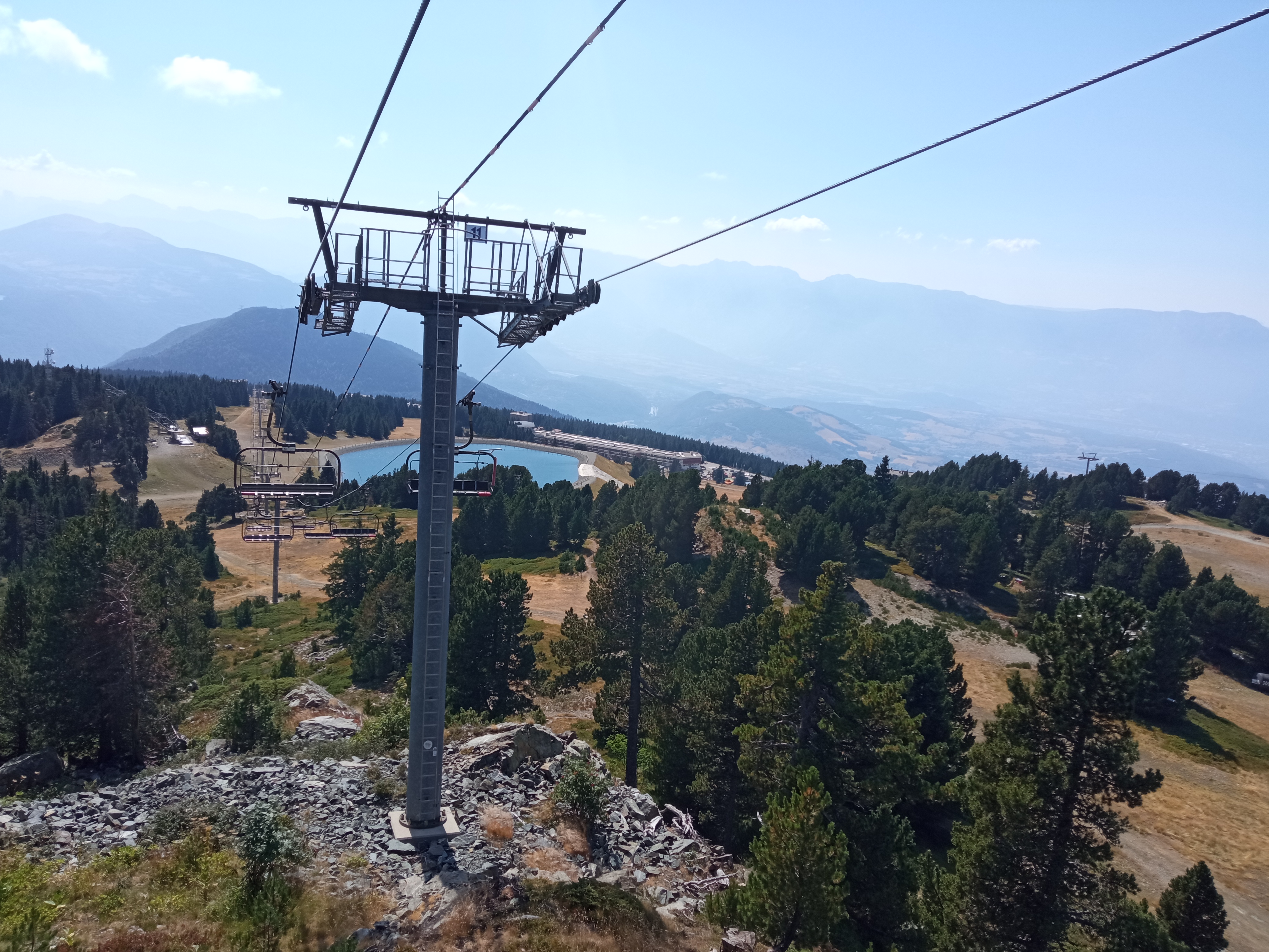 Quelques passages ce jour pour du VTT de descente. C'est un 4 places débrayable mais un siège sur 2 peut prendre un vélo. Heureusement que les employés sur place s'occupent de tout, toujours souriants et disponibles pour donner des informations.