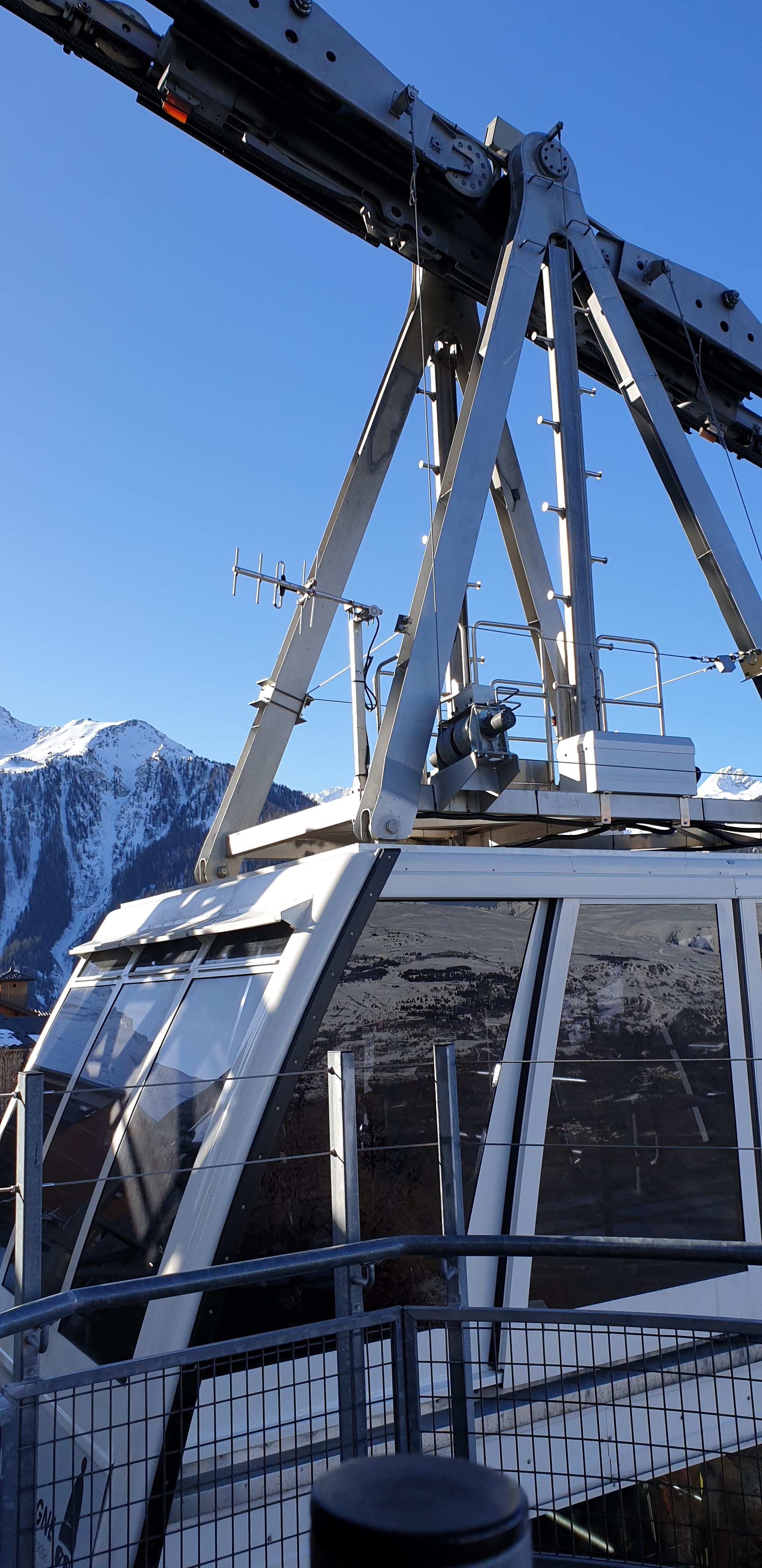 Téléphérique de 200 personne avec deux niveaux qui permet de traverser des arcs à la plagne mais ne surtout pas rater pour la retour sinon très cher le taxi.