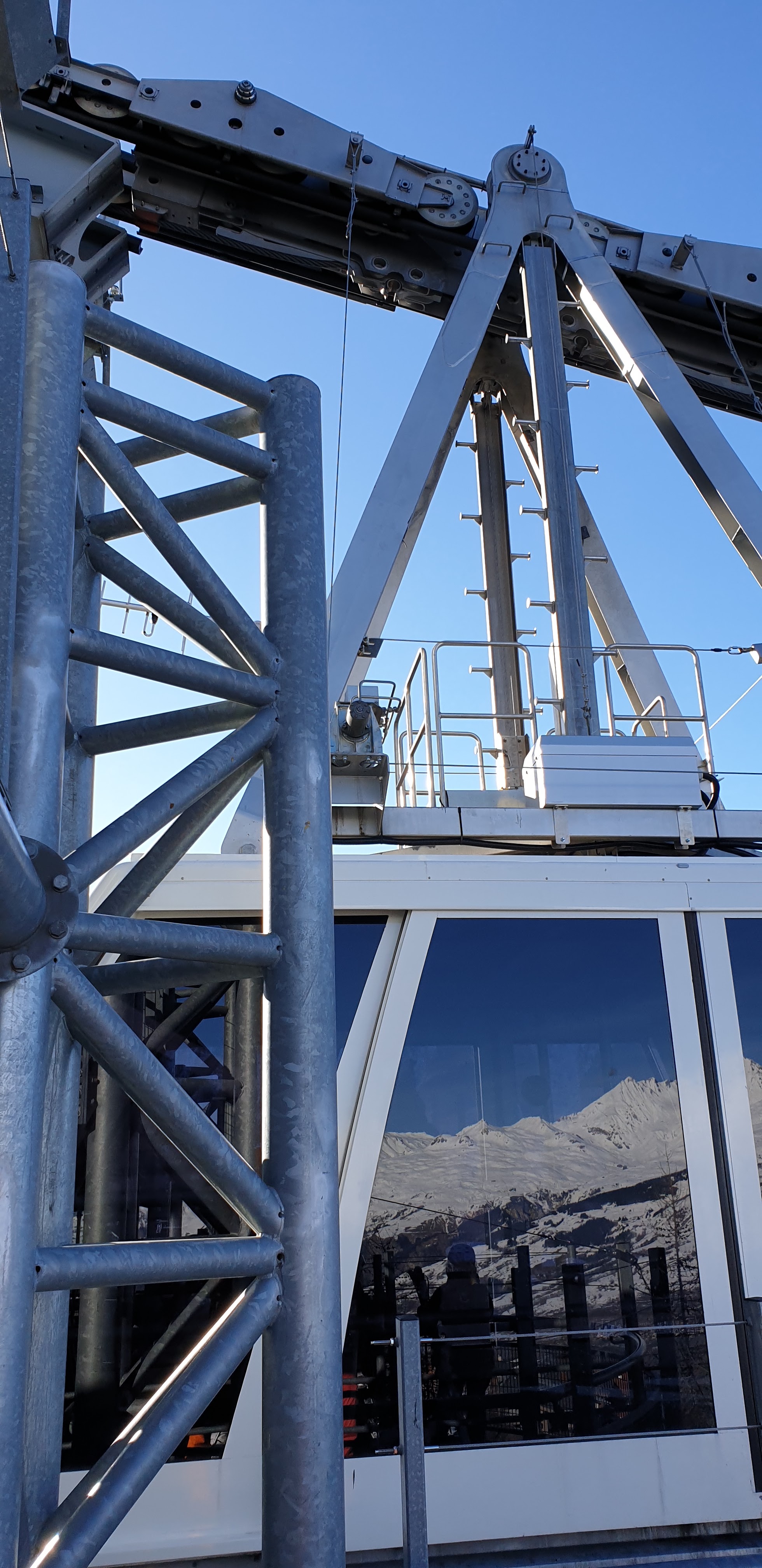 Très belle machine, un téléphérique à 2 étages de 190 places, à l'étage du dessous vous avez même un sol vitré au milieu.