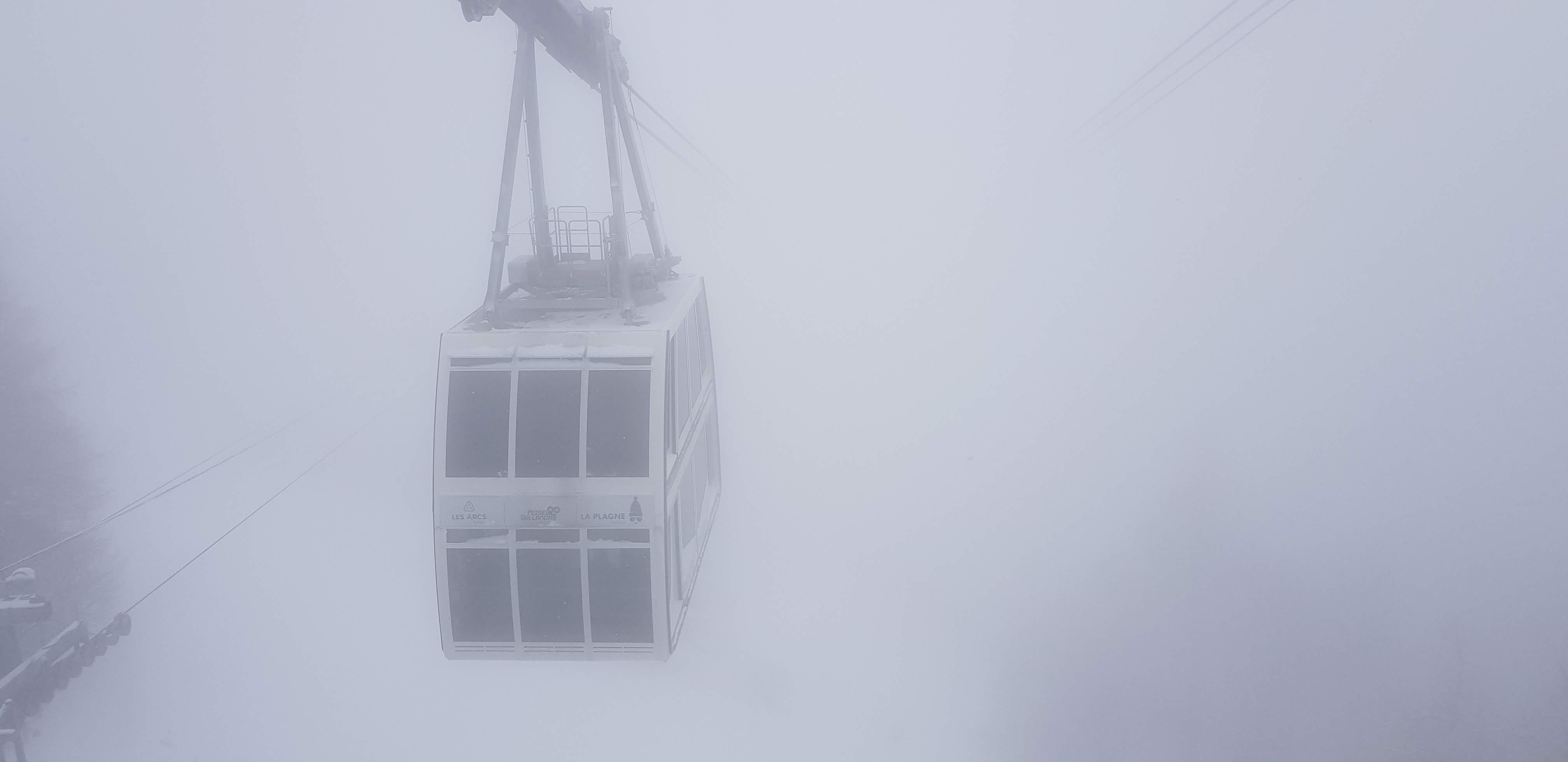 4 minutes de traversée entre la plagne et les arcs dans un téléphérique double étages. La fenêtre en verre du rdc est vraiment sympa!